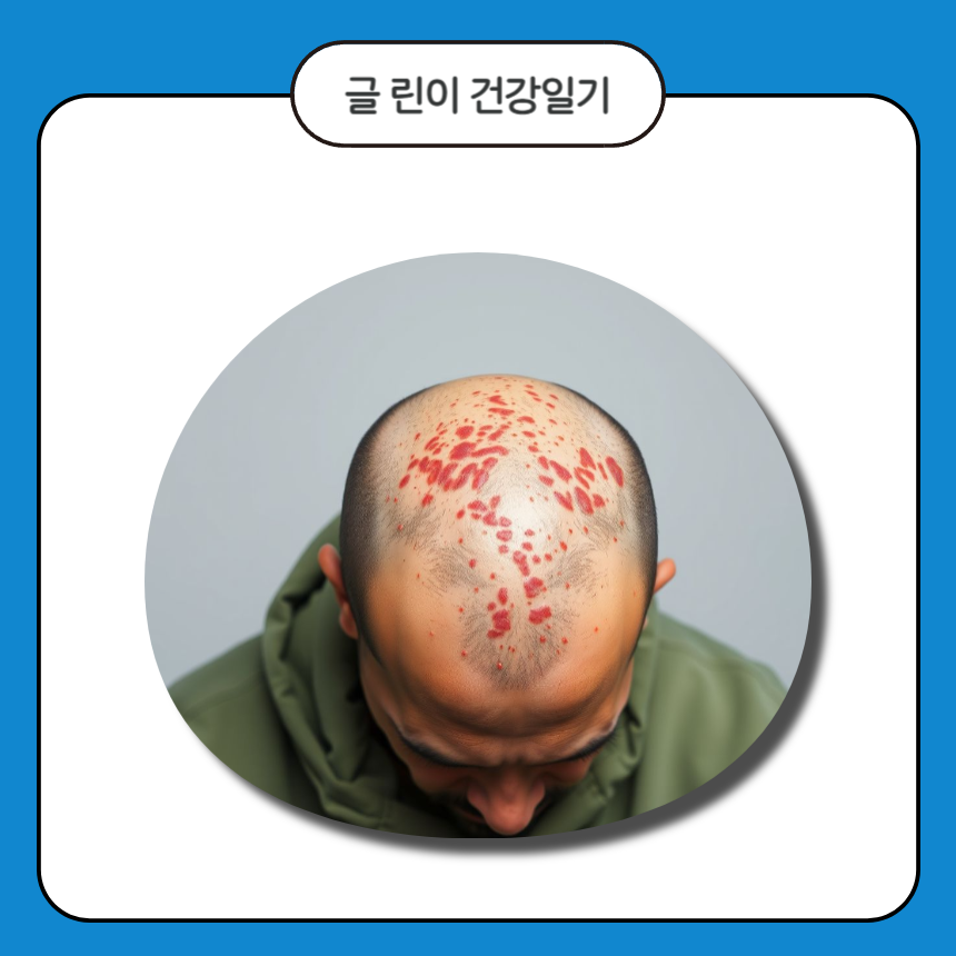 다섯 번째는 탈모입니다. 두피 건선이 심해지면 염증으로 인해 일시적인 탈모가 발생할 수 있습니다. 이는 두피의 건강이 악화되면서 나타나는 증상입니다.
